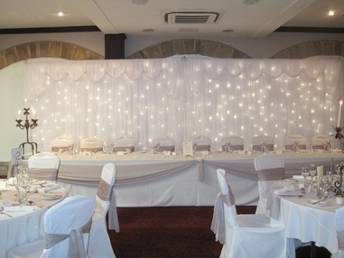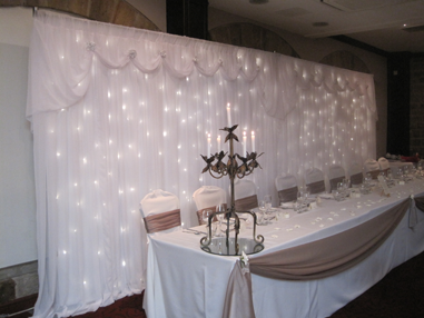 This free standing backdrop system can hide unsightly walls transforming them into a perfect background feature. Available in ivory & white with led light back curtain, totally adjustable from a minimum height of 2.m  |