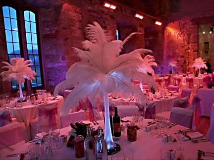 Hire these unique centerpieces to compliment your Wedding Table/Chair covers.  |